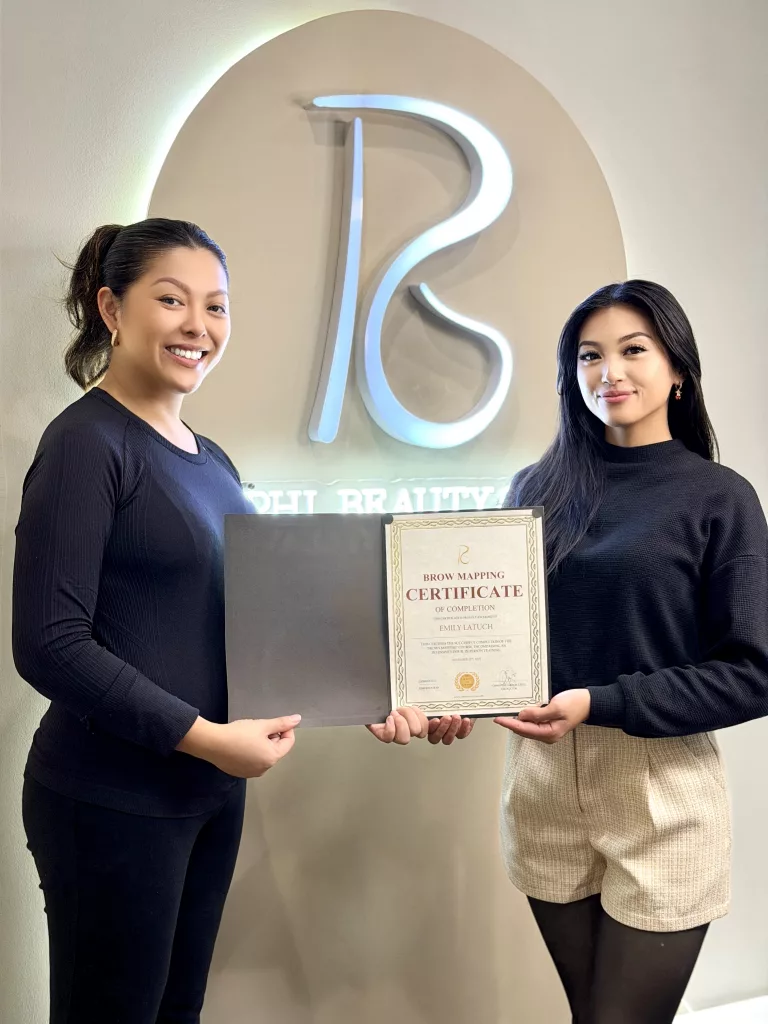 My first PMU course was in Atlanta, Georgia with Gabriela Addie, Master from PhiBrows Academy the top microblading academy in the world. I continued my advanced training in Anaheim, Orange County, California with Linnie Phan (@BrowsByLinnie) to master Ombré brows, Microshading & Nano-strokes training.